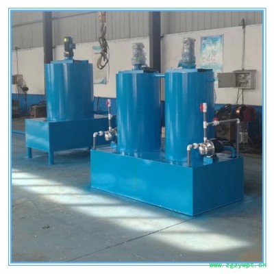 加药装置是是一种具投药、搅拌、输送液体、自动控制于一体的成套设备,用于需要投加缓蚀剂、阻垢剂、杀菌剂的循环水系统,进行水质处理药剂的准确投加与计量。 在给水、排水处理过程中,常常投加各类化学药剂作为阻垢、杀菌灭藻、混凝、絮凝用,以达到净化水的目的。这些药剂有固体颗粒、液体,在投加过程中必须溶解、稀释及按配比定量投加方能取得效果,所以溶药投加装置是水处理工程中的常用设备之一。 全自动加药装置由计量泵、药桶、搅拌机、支架、电控柜等组成,是我公司在引进国外微电脑型计量泵(美国米顿罗)的基础上,结合国内用水系统的实际状况开发的、先进的水处理系统自动加药设备。