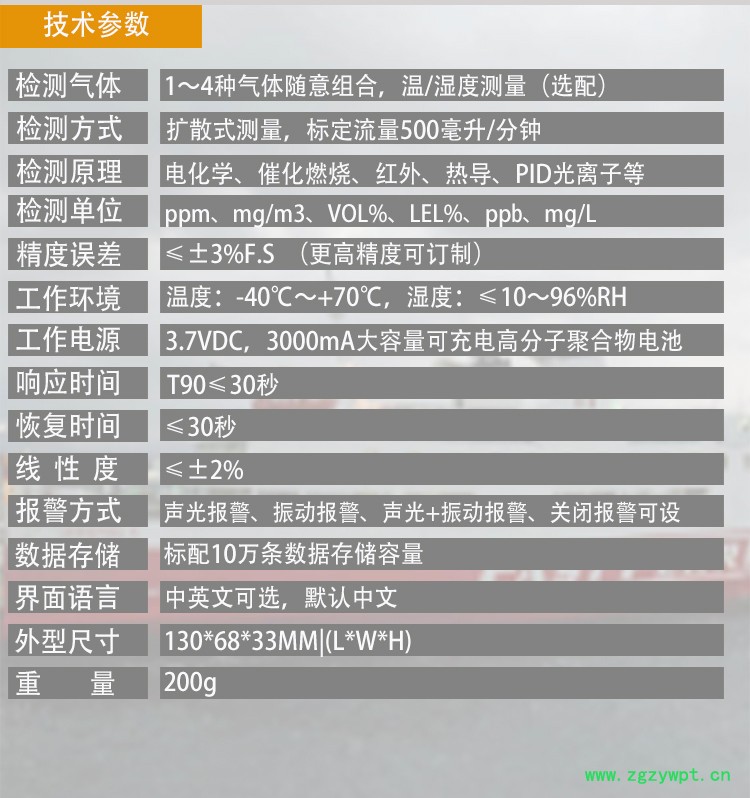 | 原理 | 电化学式气体检测仪 |