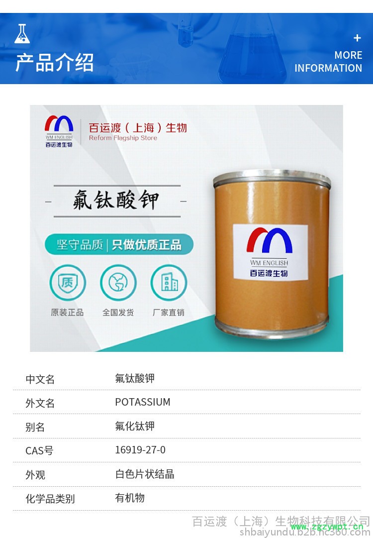 百运渡生物厂家生产氟钛酸钾含量99%工业级氟钛酸钾 催化剂氟钛酸钾