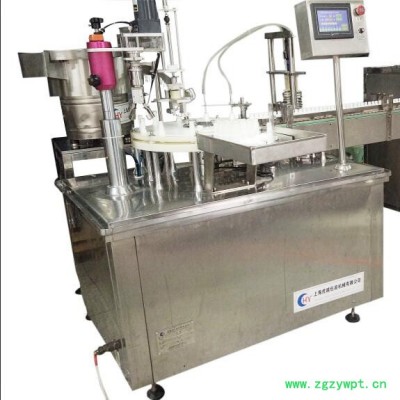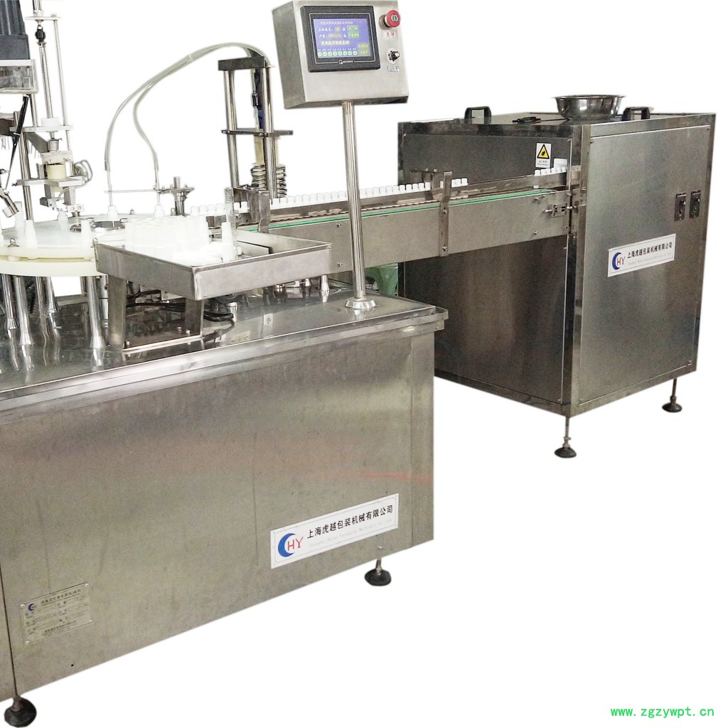 虎越包装HY-PWG60 喷雾剂液体灌装机由全自动理瓶机、灌装、上喷头旋(轧)盖机,可全自动完成理瓶、灌装,上盖等工序,本设备整机台面采用304不锈钢台面,本设备灌装头采用316不锈钢,灌装泵采用陶瓷泵,避免药液的污染,主要用于喷雾剂溶液灌装机的灌装.本生产线完全符合新版GMP要求。