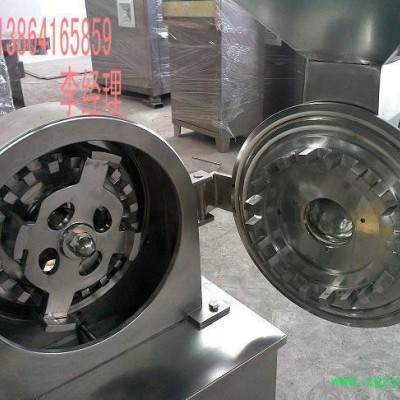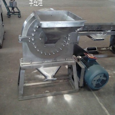 304不锈钢粉碎机,中药材粉碎机是一款不锈钢材质的粉碎机。粉碎机门上装有固定齿盘,固定齿盘上装有一圈带钢齿的固定齿圈。主轴上装有活动齿盘,活动齿盘上装有活动牙齿。活动齿盘上的活动牙齿与固定齿圈相互交错排列。当主轴高速运转时,活动齿盘也同时运转。进入粉碎室内的物料,在物料与齿及物料彼此间的相互冲击、剪切、磨擦等综合作用下获得粉碎。成品经筛网过筛后,由粉碎室进入收集袋,粗料继续粉碎。客户可以根据不同产成品的细度要求更换不同细度的筛网。 FS系列粉碎机结构科学,运转平稳,使用方便,噪音小,产量高,易于拆洗,更换配件方便,符合GMP标准。粉碎粒度范围广,成品粒径在20-200目范围任调;机型全,产量15~800kg/h机型任选。 二、适用范围 ??FS系列粉碎机适用于医药、化工、食品等行业。适合粉碎干燥的脆性物料,也可以粉碎含水量较大的物料,如水果、豆浆。 304不锈钢粉碎机,中药材粉碎机??由于本机与粉碎物料相接触部分全部采用不锈钢制造,具有良好的耐腐蚀性,使药品、食品生产能符合卫生标准要求。 ?