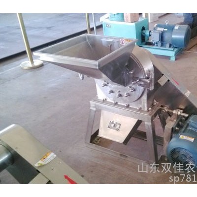 山东双佳农牧机械科技有限公司所生产的粉碎机系采用304号不锈钢制作,配套国标电机,主要用于化工材料、中 药材含树根、树枝以及块状类物料、各种含油量不高的粮食、五谷杂粮以及其他一些硬性、脆性的物料。利用活动齿盘和固定齿盘间的相对高速运转,使被粉碎物经齿盘冲击、摩擦及物料彼此间碰撞而获得粉碎。粉碎物可直接从磨腔中排出,经出料口出来,物料经过粉碎后装入布袋收集,粉碎后的物料收集在袋内,空气则从布袋的细小孔眼出来,不会将细粉排出,从而起到不浪费,不污染的效果。粗细可更换不同目数的筛网调节。