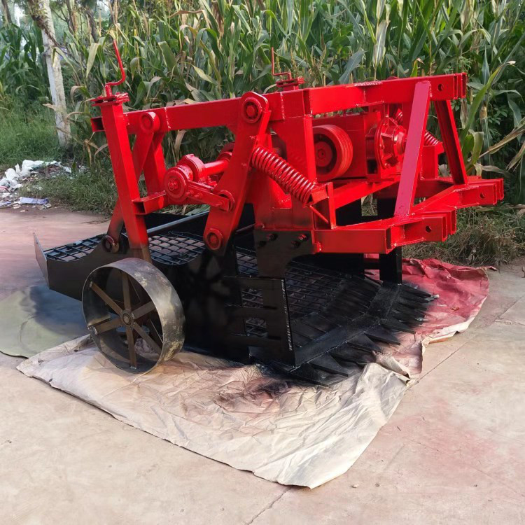 该机是与60马力以上的大、中型轮式拖拉机配套的悬挂式薯类作物收获机具,适应于沙质土壤、中等粘土质栽植的马铃薯、红薯、花生及生地、丹参、远志、板蓝根、柴胡、黄姜、伏子、黄芹、川地龙等中药材的机械收获作业