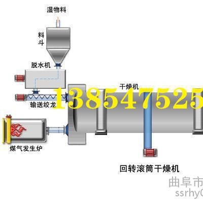 旋转烘干机,也叫转筒干燥机、滚筒烘干机。主要由回转体、扬料板,传动装置,支撑装置及密封圈等部件组成,直径:Φ1000-Φ4000,长度视干燥要求确定。传统干燥设备之一,是一个与水平方向略成倾斜的圆筒,物料从较高的一端加入,高温热烟气与物料并流进入筒体,随着筒体的转动,物料由于重力的作用运行到较低一端。在圆筒内壁上装有抄板,把物料抄起又洒下,在下落的过程中被打散装置破碎成为细小颗粒,使物料与气流的接触表面增大,以提高干燥速率并促进物料前行。转筒烘干机,操作弹性大、干燥成本低。适应性强、可靠性高。处理能力大,燃料消耗少,抗过载能力强,筒体运行平稳,能够使用高温热风对物料进行快速干燥,设计考虑了生产余量,即使产量小幅度增加,也无需更换设备。设备采用调心式拖轮结构,拖轮与滚圈的配合好,大大降低了磨损及动力消耗。专门设计的挡轮结构,大大降低了由于设备倾斜工作所带来的水平推力。 案例:烘干鸡粪1、能将含水分60%的鲜鸡粪经过高温烘干、消毒灭菌、分解等工序烘干而成的含水分14%以下的纯鸡粪有机肥或与秸秆混合的鸡粪颗粒饲料。2、烘干成品:鸡粪机肥有农作物所必需的多种营养元素。经权威部门检测认定:该肥料中含氮量为2.6%,含磷量为3.5%,含钾量为2.5%,粗蛋白为16-25%,有机质为45%。是无公害绿色食品种植的最佳选用肥料,还可直接用于喂鱼、牛、猪等。