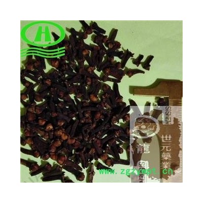 【性状颜色】:略呈研棒状,长1~2cm。花冠圆球形,直径0.3~0.5cm,花瓣4,复瓦状抱合,棕褐色或褐黄色,花瓣内为雄蕊和花柱,搓碎后可见众多黄色细粒状的花药。萼筒圆柱状,略扁,有的稍弯曲,长0.7~1.4cm,直径0.3~0.6cm,红棕色或棕褐色,上部有4枚三角状的萼片,十字状分开。质坚实,富油性。气芳香浓烈,味辛辣、有麻舌感