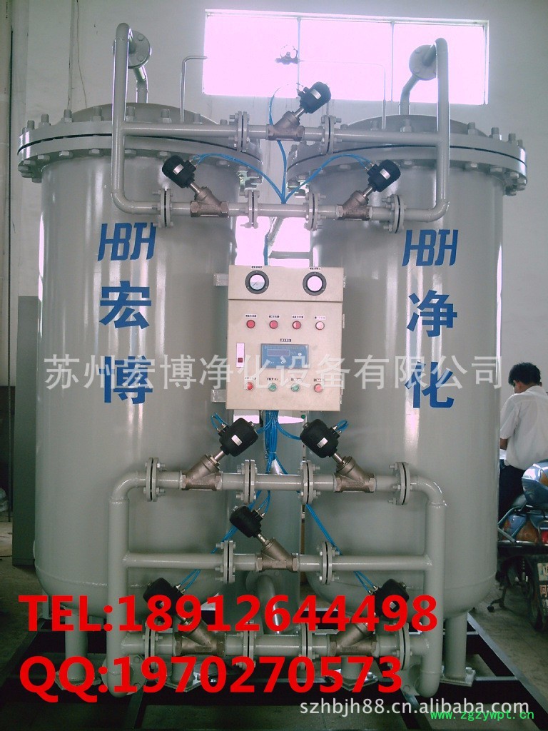 碳分子筛变压吸附制氮装置,是一种新型的空气分离设备,以压缩空气为原料,碳分子筛为吸附剂,采用变压吸附流程(简称P.S.A)。在常温低压下,利用空气中的氧和氮在碳分子筛中的扩散速率不同,把氧和氮加以分离,氮气的纯度和产气量可按客户需要调节。本公司生产的HBFD系列普氮型制氮装置,氮气纯度为98-**,产氮量为5NM3/H/FONT>1000 NM3/H,HBFD系列制氮装置与本公司生产的HBDC系列氮气纯化装置配套即成为高纯氮型制氮系统,氮气纯度为99.9995%,产氮量为5NM3/H?/FONT>1000 NM3/H,氮气中含氧量小于等于5ppm,露点小于等于-60℃.产品遍布石油化工,化工机械,化纤,医药,食品,饮料,钢带,电炉,工业炉等行业