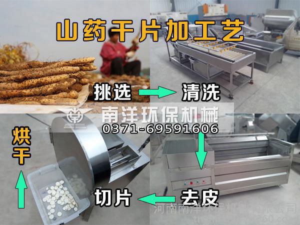 山药干片加工工艺:挑选、清洗 、去皮、切片、烘干