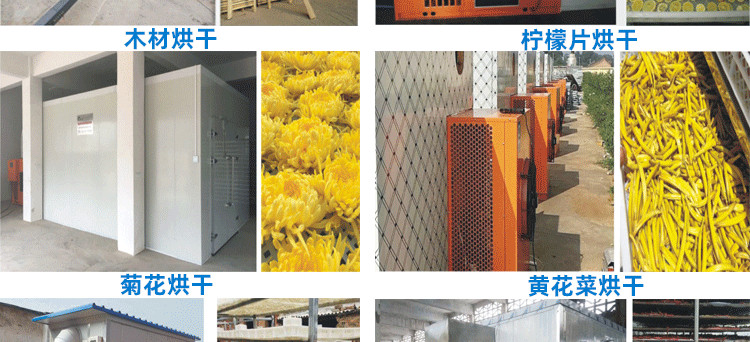 烘干机主要构造: 1、 主机:热泵烘干除湿机(热泵烘干机利用输入很少的电能吸收空气中的免费热量,用来烘干物料) 2、 烘干房:聚氨酯发泡保温库房(定制),用来摆放物料,以及保温以免热量散失。 3、 烤房循环系统:热风循环系统,将热量带到烘干房的每个角落提升烘干房的温度,并将物料蒸发出来的水分带走。 4、 排湿排水系统:将烤房里边的高温湿热的空气大部分冷凝变成水排掉,多余的水汽通过风机排出。 5、 全自动智能控制系统:按照合适的烘干工艺曲线,自动调节温度和湿度、烘干时间。 6、 高效节能技术:高效废热回收除湿装置,比普通热泵烘干机提升能效30%。