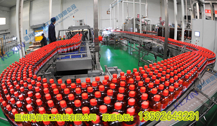 (5)灌压设备作用是向容器瓶子里灌浆、灌碳酸水,然后压盖封口。采用等压溜装时,可直接向瓶内灌人来自一次性混合机的饮料并在同机上压盖封口,省去了灌浆这一工序和设备,封口后的瓶子经贴标(有手工、有机械)后装箱。