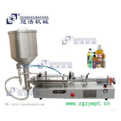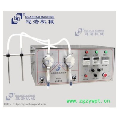 珠海冠浩机械带料斗半自动卧式灌装机,该款灌装机设计合理,机型小巧,操作方便,采用不锈刚材料制成,符合GMP要求,灌装量和灌装速度均可任意调节,精 度高.灌装闷头采用防滴漏,防拉丝及升降灌装装置;本机可根据客户的需求改装成为多头,防爆式,溢流式灌装系统. 适用于医药,日化,食品,油,酒,农药及特殊行业的理想充填设备.
