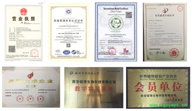 西安锐博生物科技有限公司专注于天然植物提取物的研发、生产和销售,十余年致力为饲料、养殖、食品等行业提供天然健康原料,获得食品生产许可证,饲料添加剂生产许可证,同时公司通过ISO质量管理体系认证、HALAL清真认证、高新技术企业认证,拥有十余项,与西北农林科技大学建立了长期稳定的合作关系。