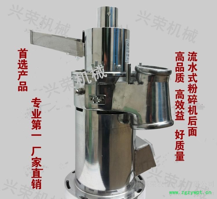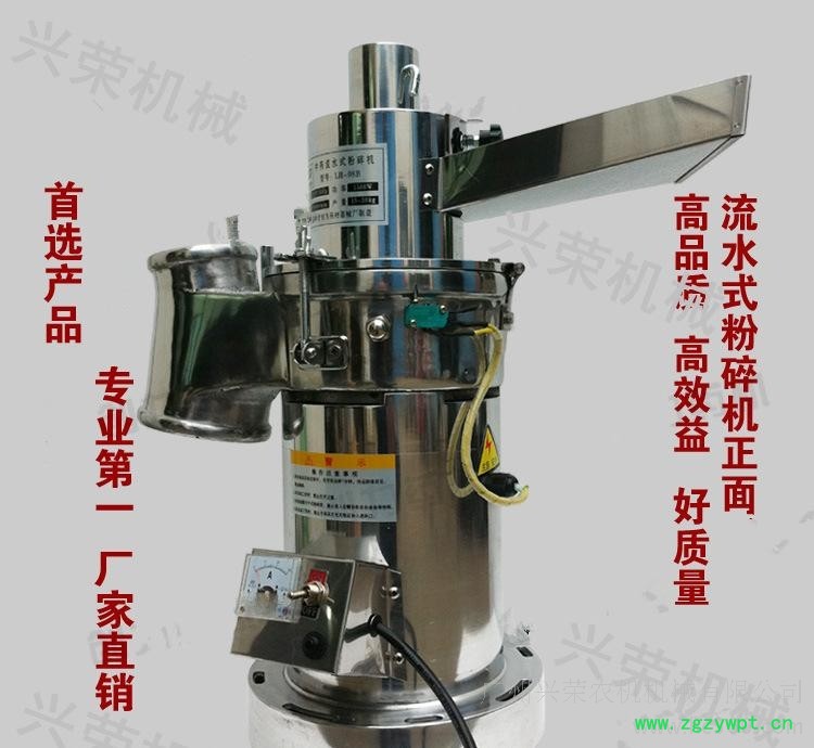 全不锈钢流水式粉碎机适用于小型中药厂、中药店、中医院,同时适用化工、矿山和科研 单位等,该工作效率高,操作简单。产品细度克达200目,对于粉碎易粘结,通常粉碎机难于粉碎的贵重中药**更为有效。 中药粉碎机主要技术参数: 生产能力:20-40kg 细 度: 80-200目 电 压: 220v 主轴转速: 2840r/min 电机功率: 1500w 重 量: 25kg 外形尺寸: 500×170×550mm 中药连续式粉碎机 详细介绍: 一、注意事项: 1、检查粉碎腔内是否有异物(开机前必须为空),接通电源。 2、拧紧上盖和粉碎腔的蝶形螺帽。 3、启动电机,空机转动1-2分钟,然后从进料盘中渐渐喂入所打物料,喂料不宜过快过多。 4、如遇物料卡住,电机不转,请立即关闭,以免电机烧毁,待清除所卡物料后,可继续使用。 5、本机在使用过程中严禁打开上盖和用手伸入粉碎腔内。 6、本机系干式粉碎机,不宜粉碎潮湿物和油腻物。 7、请用户根据所需更换不同筛网。 8、本机采用过热保护器,如电机负载过大,会自动停机,如继续操作,请重新按下保护器。 9、在本机工作过程中,电流不得大于10安培。 二、常见故障产生原因及排除方法: 故障 产生原因 排除方法(必须切断电源才能进行以下操作) 通电后电机不转动 1、电源接触不良或插头松动2、电源开关接触不良3、微动开关接触不良4、热保护器失灵 ⑴复电源或调换接头⑵修理或更换开关⑶调整微动开关⑷更换热保护器 通电后电机转动过慢或不转并产生振动 1、机械部分卡住(粉碎机槽内有异物)2、离心器没有打开3、电源电压过低 1、清除粉碎槽内异物,开机先空转半分钟后再慢慢喂料2、调正电源电压 电机机壳表面过热 1、负荷过大2、电机潮湿3、电源电压过低 1、减少工作压力2、干燥电机3、调正电源电压 换向器表面产生环火或较大火花 换向器表面不光滑 清除换向器表面杂物 非人为因素,因产品质量机器零配件需要更换的,公司除免费更换外,并承担配件包装、运输费用。(安全信誉保障:只需预付少量定金,即可物流快运发货,货到再付清余款) **,欢迎来电订购!15800043051 在线客服QQ:1985648089 直接购买的顾客广州市内可乘862B 、701、832、560、502、504、126、179、836、B6、83、219公车到同和站或者东坑站下车即可!或者乘地铁到同和C/D出入口下。