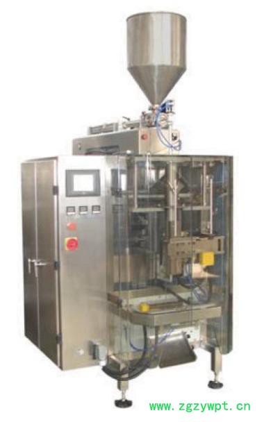 液体自动包装机是针对液体、膏体和有一定粘稠体等物料实现自动包装而设计的包装机械。全部采用不锈钢制成,高位平衡罐或自吸泵定量充填、直热封切、制袋尺寸、包装重量、封切温度调节方便可靠,生产日期色带打印、边封、背封和光电跟踪。人机界面控制系统自动优化匹配各动作配合,从而达到包装速度。伺服动膜系统,横封伺服控制,定位准确,整机性能。生产过程可自动完成制袋、计量、充填、封合、打印批号、生产日期、加易撕口、切断或联体袋、计数等 全过程。采用柱塞泵容积法计量方式,特别适合包装易拉丝及滴漏的物品,如洗发液等类似的物料。该机可以实现三边封口或四边封口的包装。