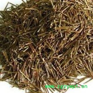 【药材性状】 干燥的松叶呈针状,长约12~18厘米,粗约0.1厘米,两叶并成一束 外包有长约0.5厘米的叶鞘,呈黑褐色。中央有长细沟,表面光滑,灰暗绿色