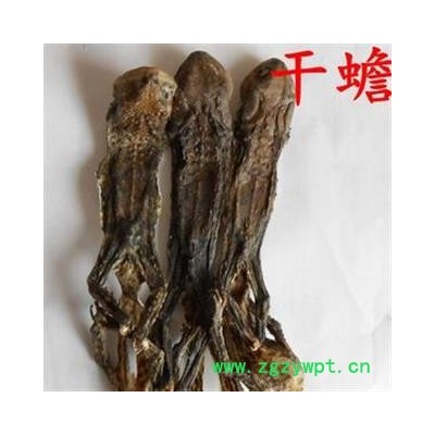【药材品名】干蟾皮 【产 地】辽宁 【年 份】:2014 【加工方法】杀死蟾蜍去除内脏晒干 【药材性状】 1、整体外观描述:除去内脏长 2、表面特征:全体拘挛抽皱,纵面有棱角,四足伸缩不一,表面灰绿色或绿棕色。除去内脏的,腹腔内面为灰黄色,可见到骨胳及皮膜。个大、身干、比较完整。 3、质地:肉质 4、断面: 5、气味:气微腥味辛 【商品规格】统全开 1.比例:大小均匀体粗壮,长约10厘米以上,雄者较小。全体皮肤极粗糙,除头顶较平滑外,其余部分,均满布大小不同的圆形瘰疣 【杂 质】:无 【虫蛀、霉变】:无 【干 度】:9.5成 【包 装】:纸箱