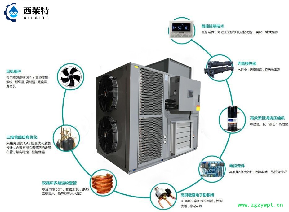 而使用空气能烘干机则不同,药材想烘**烘,完全不需要担心坏天气的影响,比如西莱特空气能烘干机内部有微电脑系统,用户使用时只要设置好温度、湿度以及时间后**可以去喝茶聊天了。