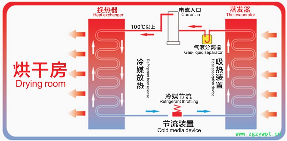 4、运行安全可靠:整个系统的运行无传统干燥器(燃油、燃气或电加热)中可能存在的易燃、易爆、中毒、短路等危险,是一种安全可靠的半封闭干燥系统。