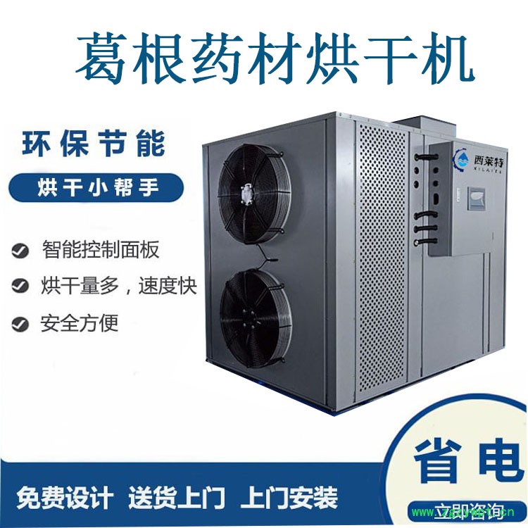 葛根热泵烘干机采用西莱特自主研发的PLC控制系统,能控制适宜控制在60℃,使得葛根烘干后有效成分黄酮保存为9.85%-10.74%,比晒干黄酮保存率更高。同时,该设备自动化程度高,不需要专人看管,葛根烘干工艺全部由智能化控制完成,节省大量人力成本。