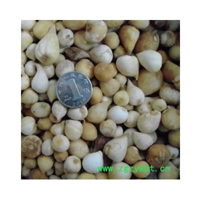 性状:干燥的鳞茎,呈卵圆形或圆锥形,高约0.7~1.5厘米,直径约0.5~1厘米。底部圆而凹陷,有根痕,上端急尖,一侧有纵沟自基部伸向顶端。表面黄白色,光滑。质硬而脆,横断面黄白色,粉质。五香气,味淡。以色白、体质饱满者为佳。