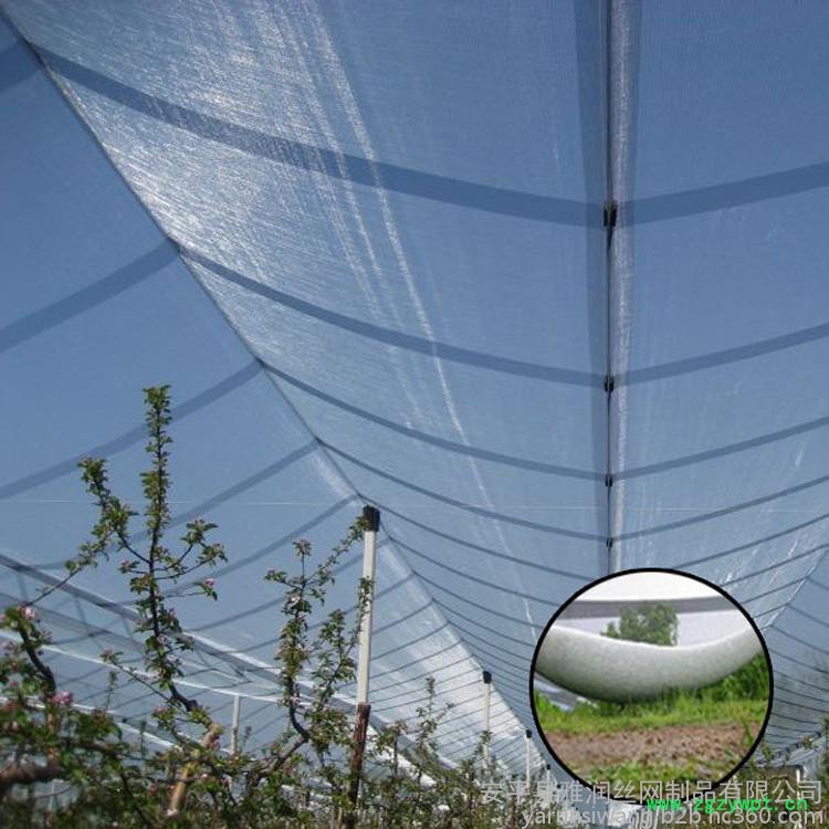 对雹网材料要求:①重量要轻,便于架设;②耐用;③价格便宜;④对光照影响小。