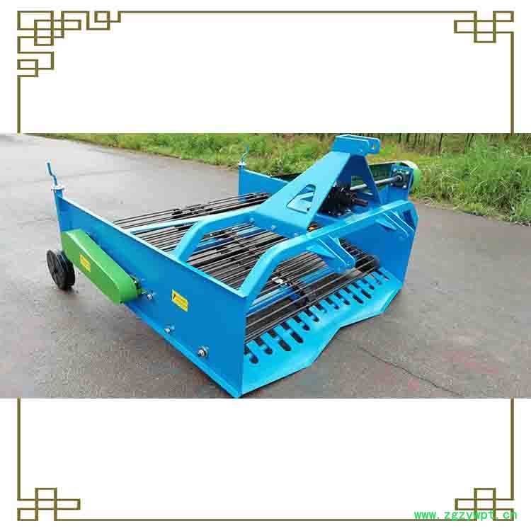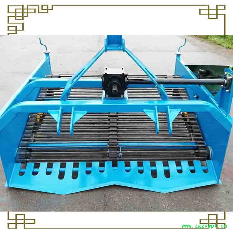 4U系列马铃薯收获机通过后齿轮或侧链轮传动方式配套于12-18HP拖拉机。该土豆收获机用于薯类挖掘,将块茎部分从土壤中分离,从而使薯类脱离根茎到达地面便于拾捡。该工作原理是在拖拉机齿轮传动下,通过振动筛震动使土壤和块茎分离,土壤在振动筛间隙掉落,留在振动筛上的马铃薯则通过振动筛的震动落在后面土地上。