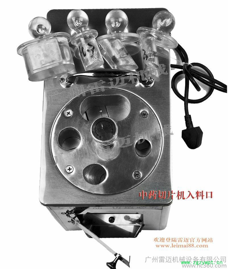 广州雷迈机械公司所生产的人参切片机又称西洋参切片机、鹿茸切片机、药房切片机、药店切片机,是专门为参茸店、药房、诊所、家庭切制西洋参、鹿茸、天麻等参类药材设计的可切成斜片,横片,直片,片片厚薄均匀,色泽美观。刀盘上装放刀片四把,可任意调节厚薄.具有体积小、使用方便、切片美观、操作简单、质量稳定、使用寿命长等优点。适用于参类、植物的根茎及其它**药材的切片。是各中药房、药店、中药加工场**的选择