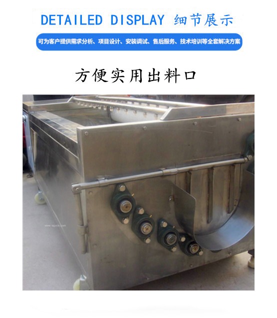 清洗后的泥沙杂质会从溢流槽溢出,沉淀物从排污口排出。该机具有外形美观和操作方便,清洗容积大、效率高、耗能小,可连续清洗,操作简单,使用寿命长等特点,毛辊材料经特殊工艺处理(采用尼龙线绳轧制而成),经久耐用,耐磨性能好。箱体采用**不锈钢材质,不锈蚀、清洁卫生。