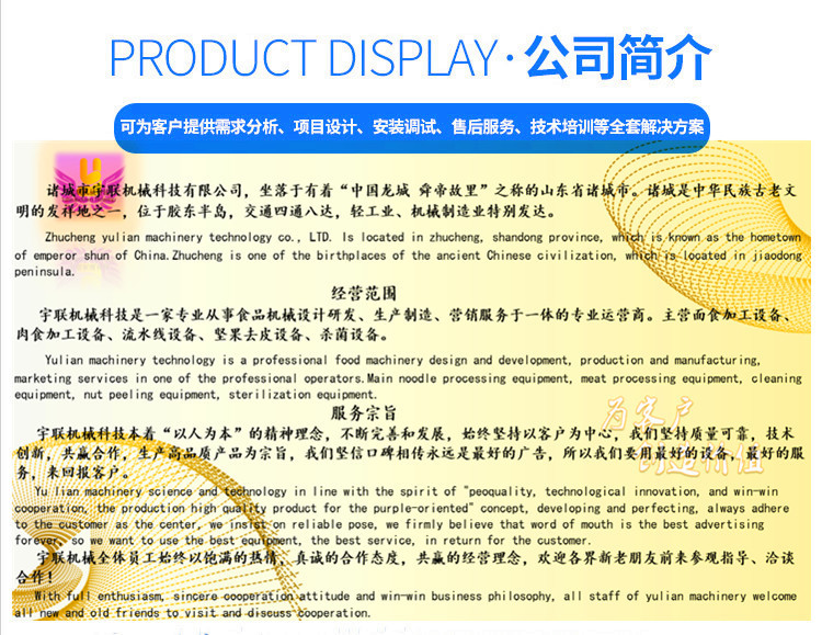 本机主要部件由不锈钢制作,以保证长期工作不锈、不蚀、无毒、无害等特征,符合食品加工机械卫生标准要求。