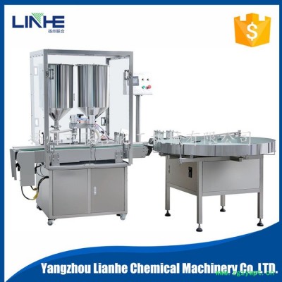 本机采用PLC可编程控制,W.6英寸触摸屏人机界面系统,集光电传感、自动吸料、气动执行于一体的高科技灌装设备。功能特点:◆同时灌装三种不同的物料;◆自吸式吸料,吸料方便;◆可根据不同的瓶型在数分钟内完成切换,调整方便;◆每个灌装头设有卡瓶装置,确保灌装定位**。 适用瓶径Applicable bottles Driveφ40-φ100mm计量精度Measurement accuracy±1%灌装容量Filling capacity40-300ml生产能力Production capacity180≤瓶/h气压Pressure5kg功率Power0.5kw重量Weight300kg外形尺寸Overall dimensions2000*1000*2300(mm)(L*W*H)☆可选配以夹瓶下压式拧盖机或自动旋盖机进行旋盖。