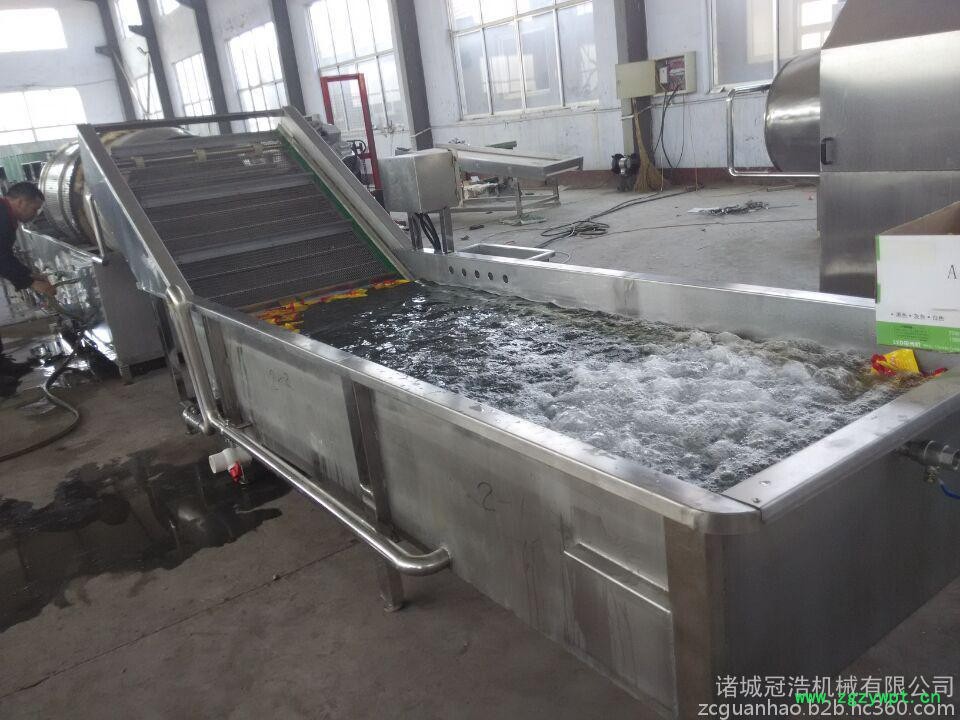 冠浩机械本设备适用于各种水果蔬菜的清洗,水力输送方式输送番茄等表皮较软的原果,卫生可靠,既可起到清洗作用,又节约电源。