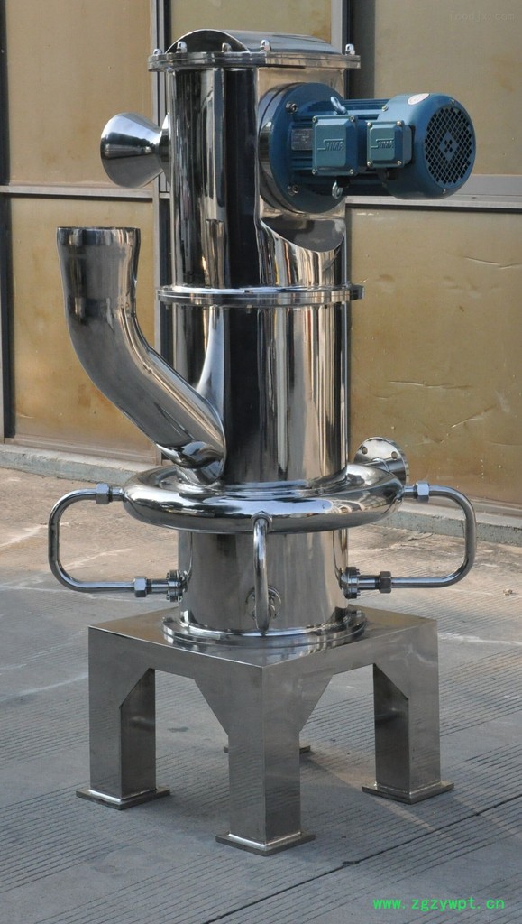 喂入磨内的物料利用二维或三维设置的数个喷嘴喷汇的气流冲击能,以及气流膨胀呈流化床悬浮翻腾而产生的碰撞、摩擦进行粉碎,并在负压气流带动下通过顶部设置的涡轮式分级装置,细粉排出机外由旋风或袋式收集器收集,粗粉受重力沉降返回继续粉碎。