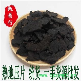 产品描述:本品为熟地的压片,统货无硫,厚度较均匀,色黑,无杂质,无虫蛀,无霉变。