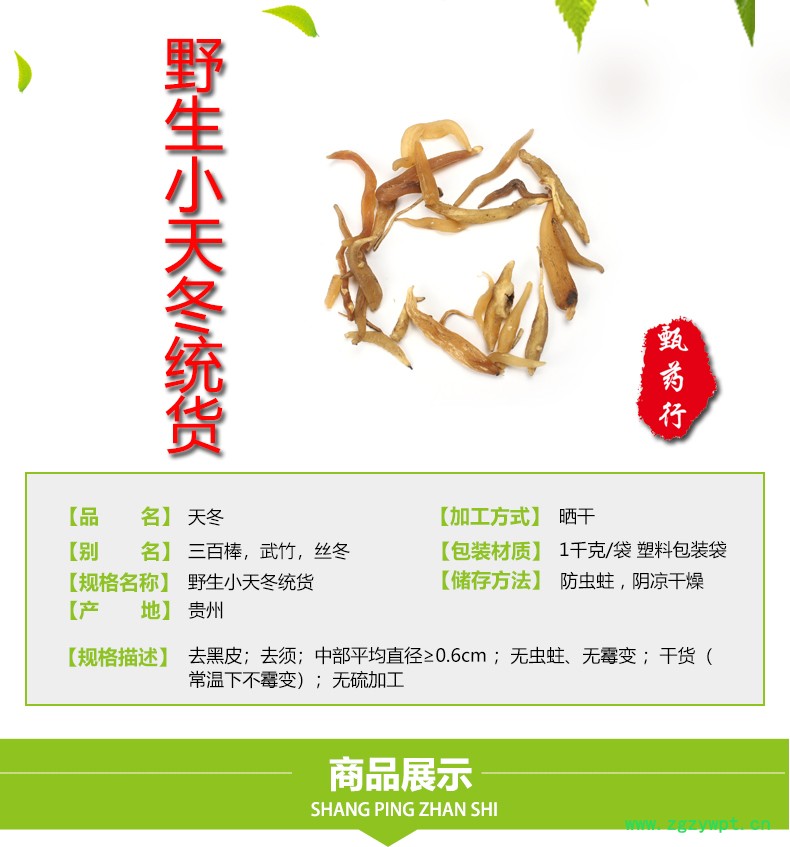 天冬 野生小天冬统货 产地 贵州省 1公斤装