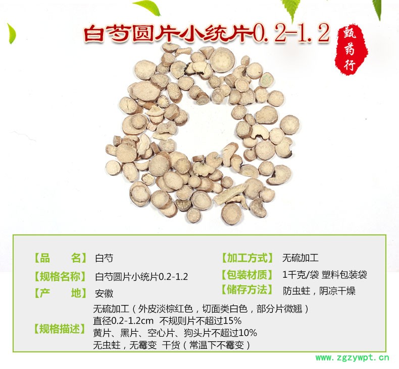 白芍 圆片小统片0.2-1.2 产地 安徽省 1公斤装