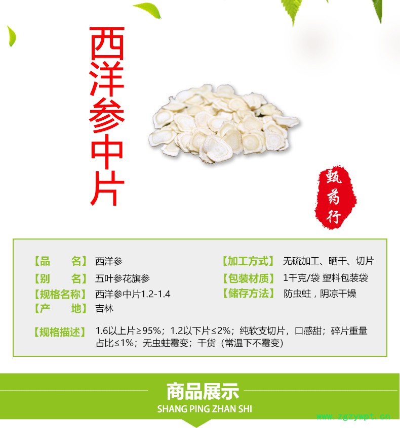 西洋参 中片1.2-1.4 产地 吉林省 1公斤装