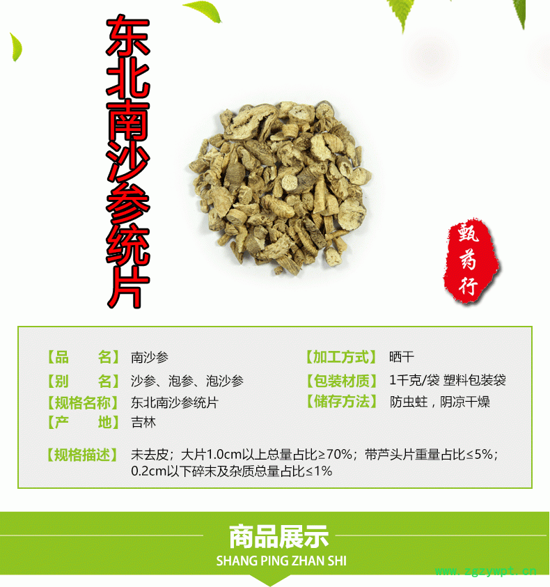 南沙参 东北南沙参统片 产地 吉林省 1公斤装
