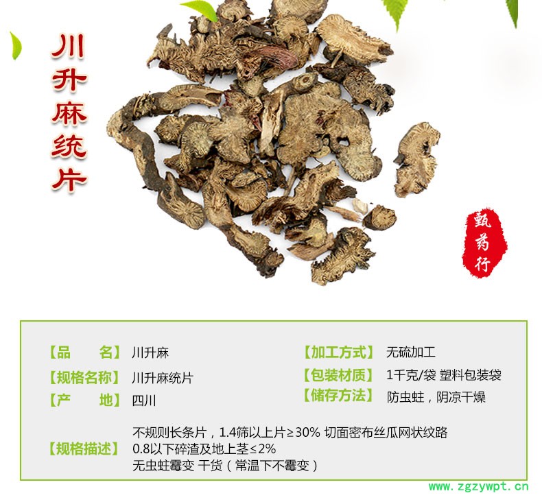 规格等级:川升麻统片