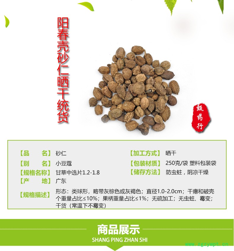 阳春砂仁 阳春壳砂仁晒干统货 一手货源批发250g装 产地广东 甄选药材行 为你真选好药材