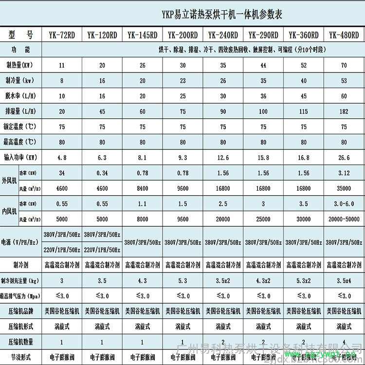 易立诺空气能烘干机是利用逆卡诺原理,输入少量电能吸收空气中的热量并将其转换到烘干库房内,实现烘干机温度提高,配合相应的除湿排湿设备实现物料的干燥。空气能烘干机由压缩机、冷凝器、电子膨胀阀、蒸发器压缩机等组成,构成了一个制冷剂循环系统,通过在压缩机的作用下在烘干房内实现气态--液态--气态的转换,以此不断的循环实现空气中的热量搬运到烘干房内空气达到干燥物料的目的。