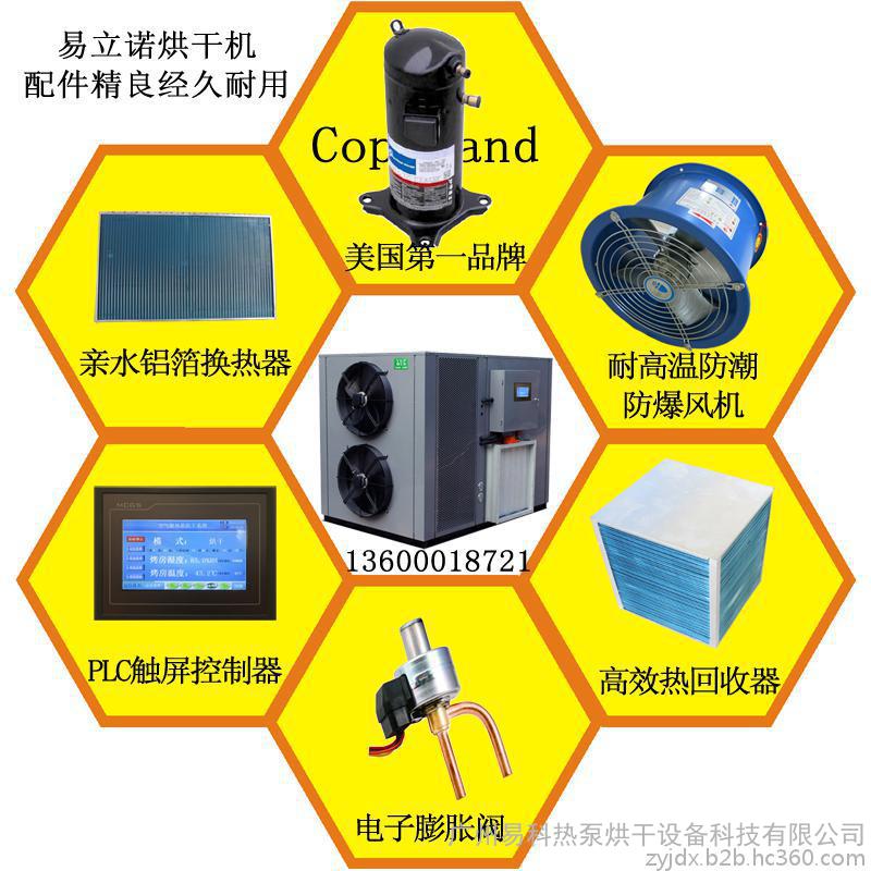 广州易科热泵烘干除湿一体机,功能强大,可以烘干、除湿、排湿、冷干、分时段编程干燥,满足各个烘干行业的要求;机组智能运行无需人工值守;机组小巧不占地方;高效、节能、环保、智能是我们**大的特点。