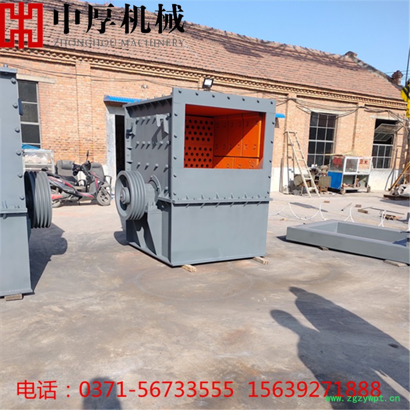方箱式破碎机又叫方箱破、方箱重锤破碎机。是中厚机械公司多年来的研发与优化设计,制造生产出了新一代破碎设备,方箱式破碎机是用锤头(板锤)对石料进行打击破碎的,箱式破碎机单个锤头重量大、转子转速高、锤头转动惯量大,充分体现了以大破小、以重碎轻的优势,且具有对大块石料进行蚕食式破碎的能力。减少了锤头在破碎腔内的磨损,使锤头的寿命提高4—6倍,每副锤头可破碎石料3—4万吨,使二级破碎变成一级破碎,破碎出的物料粒型好。方箱破碎机具有整形功能,且产品成立方状、堆积密度大,生产过程中,石料能形成保护底层,机身无磨损,经久耐用。全新换代升级产品,更长使用寿命,更少易损件,更大产量,充分实现了破碎技术的重大突破。广泛用于破碎各种脆性的物料。如铜矿、锌矿、煤、盐、白亚、石膏、明矾、砖、石灰石、青石、页岩、,其物料的抗压强度不超过300兆帕,湿度不大于30%。