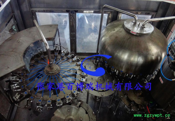 3, 兼容高:各种塑料瓶,玻璃瓶、陶瓶等容器可实现全自动灌装生产、本机能方便,快速的与原有的各种输瓶线连接。