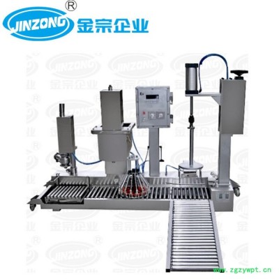 金宗机械定量灌装机主要用于化工原料的定量灌装封口的自动生产线,特别适用于化工行业涂料、油漆的自动定量灌装封口中,也适用于食品、制药行业乳液类物料自动定量灌装。GZJ-Z型重量式灌装机灌装范围:0-50kg。