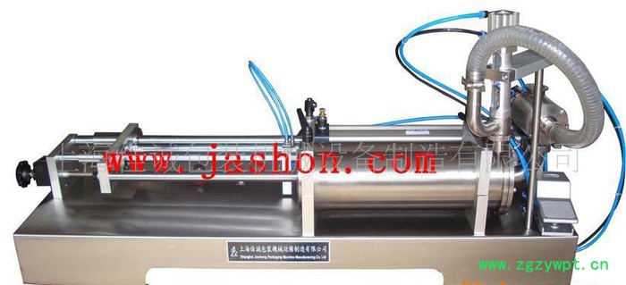 GFC活塞式单头液体灌装机是本公司开发的GFC半自动活塞式灌装系列的一种对高浓度流体进行灌装的灌装机,它是通过气缸带动一个活塞及转阀的三通原理来抽取和打出高浓度物料,并以磁簧开关控制气缸的行程,即可调节灌装量。