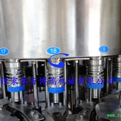 RFCW18-18-6冲瓶、灌装、封口三合一机,是集多年生产冲洗、灌装、封口三合一体机的实践经验,反复吸收各方用户的意见,借鉴国外先进技术自行开发的新型设备。它符合客户在一台机器上进行不同瓶型灌装的要求,采用悬挂式卡瓶颈方式,使更换瓶型方便,快捷。主要用于不含气饮料的冲洗、灌装、封口。