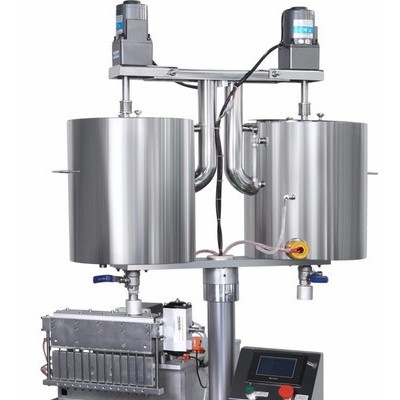 本机在设计上采用电动气动相结合的方式,并采用PLC可编程控制,可实现定量灌装。通过人机操作界面,可根据不同需要对速度、灌装量进行调整。