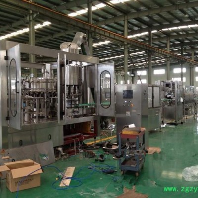 将冲洗、灌装、封口机组是在引进、消化和吸收国内外同类产品的基础上,总结了多年生产经验后开发的新产品,该机组是由冲洗、灌装、封口三台单机组合为一体,由一个传动电机传动(简称三合一等压灌装机)。具有自动化程度高、结构紧凑、外形美观、操作维护方便、安全可靠、生产能力连续可调等优点,是目前国内较为理想的含气饮料生产设备。它的适用范围广,灌装聚脂瓶(瓶型可为圆形和方型),封口选用拧盖(指聚脂瓶)。根据用户不同瓶质、瓶形以及瓶装容量,可作变更设计,以满足生产的需要。