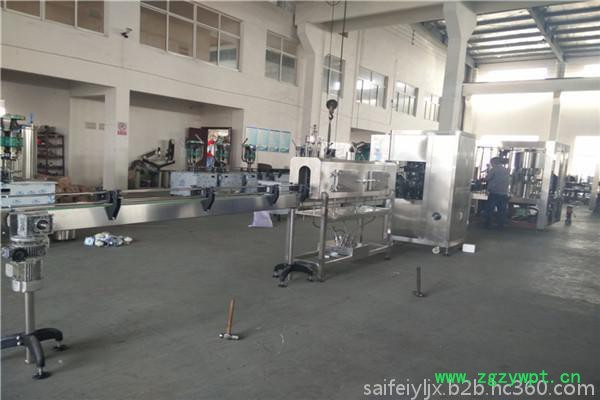 专业生产线纯净水灌装机 液体灌装机 油灌装机:本系列设备用于聚酯瓶装各种矿泉水.纯净水.果汁.酒类等不含气饮料的生产.在一机上实现冲瓶.灌装.封盖.悬挂式卡瓶口输送瓶结构,更换瓶型更方便.快捷省力,主机采用先进的PLC可编程自动控制技术,关键的电器元件均采用国际知名商品的产品,该设备主机主要由底板架、玻璃围框、洗瓶机、灌装机、旋盖机、主电机传动、星轮传动、星轮形板、 理盖器、下盖槽、分盖器及电气控制系统等部件组成。其中底板架由矩形管及钢板组焊而成,上表面及四周覆盖不锈钢面板,强度高,刚性好,重量轻,是整台设备的基础件,其底部装有地脚螺栓,可调节水平及高低;玻璃围框将主机四周封闭起来,上部采用透明玻璃门对设备进行监控,玻璃门上设有保护装置,在机器运转时打开它会自动停机,外形美观大方,使用安全可靠。