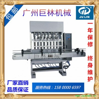 【CGF-8L全自动浓酱灌装机】详细信息 多头活塞式全自动灌装机是我司集多年生产经验,吸收世界先进技术自行研制开发的新一代自动灌装机。它采用活塞式定量原理,电器和气动元件选用世界知名品牌,由PLC配合人机界面控制,设计新颖、外形美观,具有界面友好,适应性强、操作简单、灌装量准确,维护方便等特点。广泛适用于各种液体、粘稠体、膏体的灌装,更换灌装阀(即变成多头浓酱全自动灌装机),还可灌装含颗粒的半流体、膏体、酱料等。