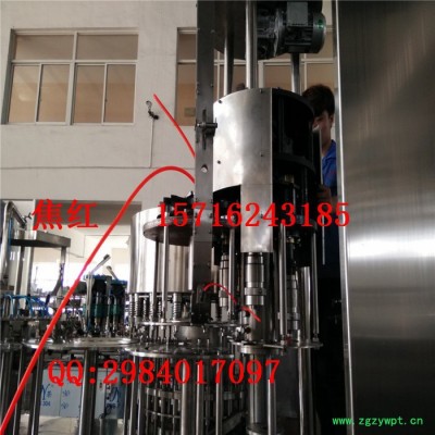 CGF系列冲瓶,灌装.封口三合一机 用途:本系列设备用于聚酯瓶装各种矿泉水.纯净水.果汁.酒类等不含气饮料的生产.在一机上实现冲瓶.灌装.封盖.